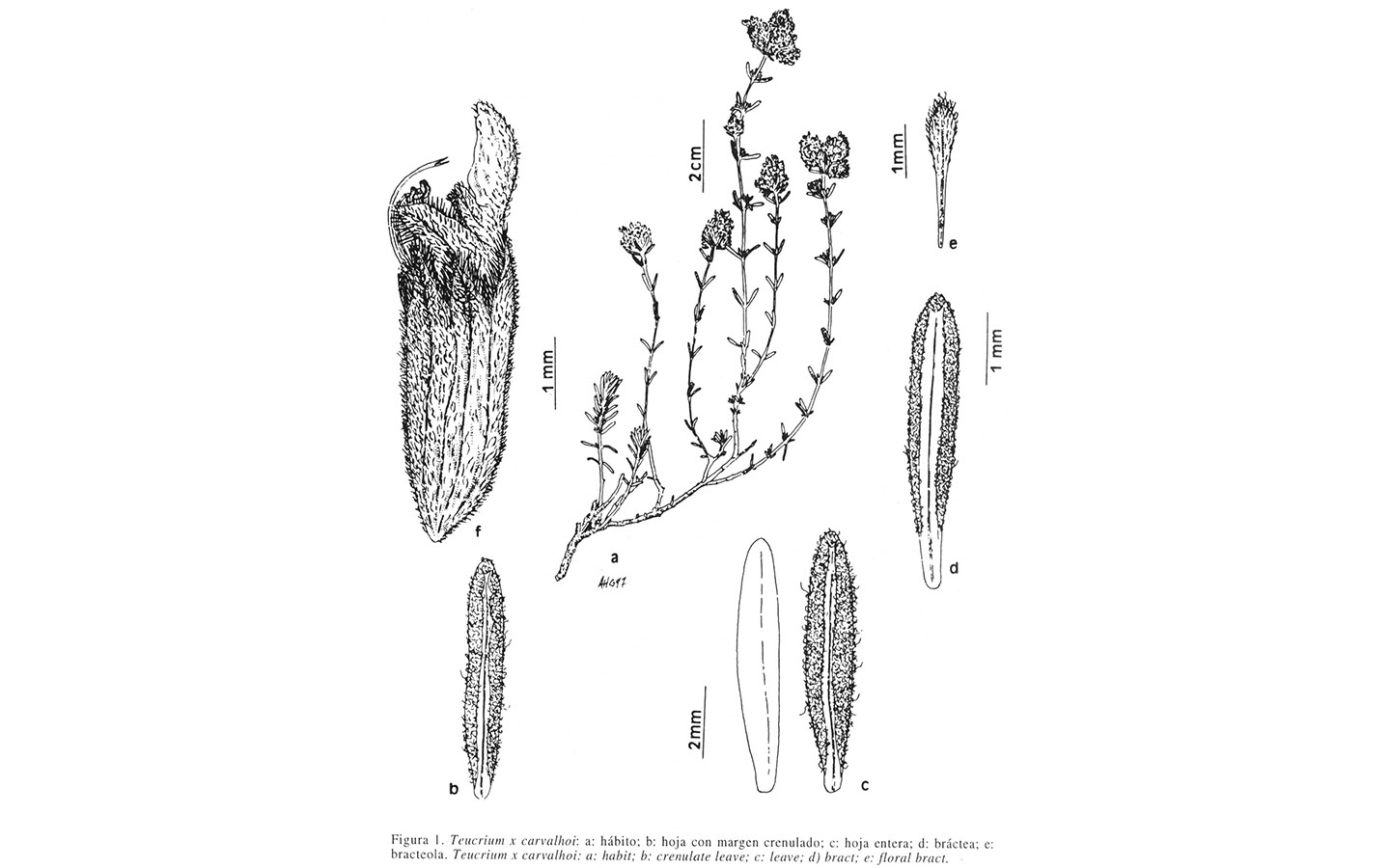 Este contenido le muestra imágenes seleccionadas de Teucrium x carvalhoae (A. F. Carrillo, A. Hernández, E. Coy, J. Güemes et P. Sánchez-Gómez) del Herbario MGC de la UMA, así como información complementaria de interés. Para obtener información detallada de todos los registros de este taxon en nuestro herbario, por favor visite nuestros juegos de datos en GBIF: https://www.gbif.org/dataset/search?publishing_org=7fadb370-f921-11dd-af50-b8a03c50a862