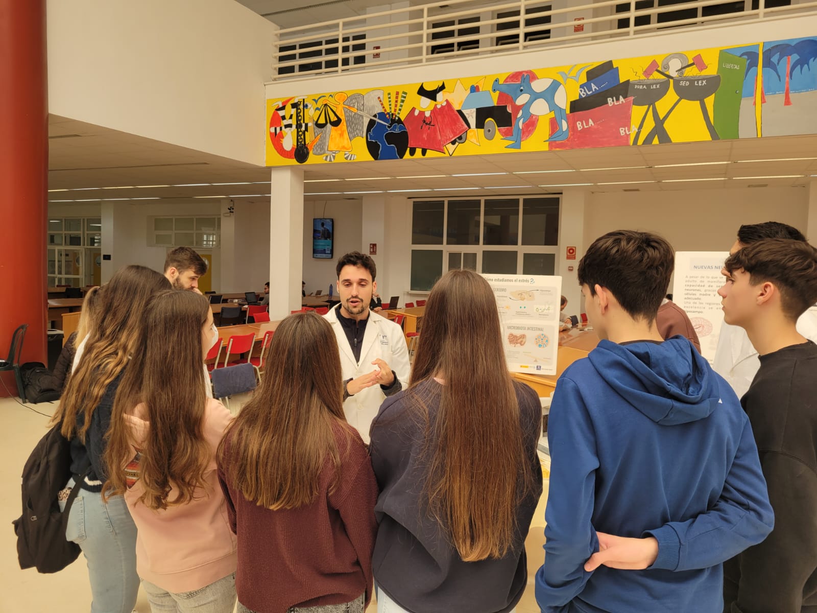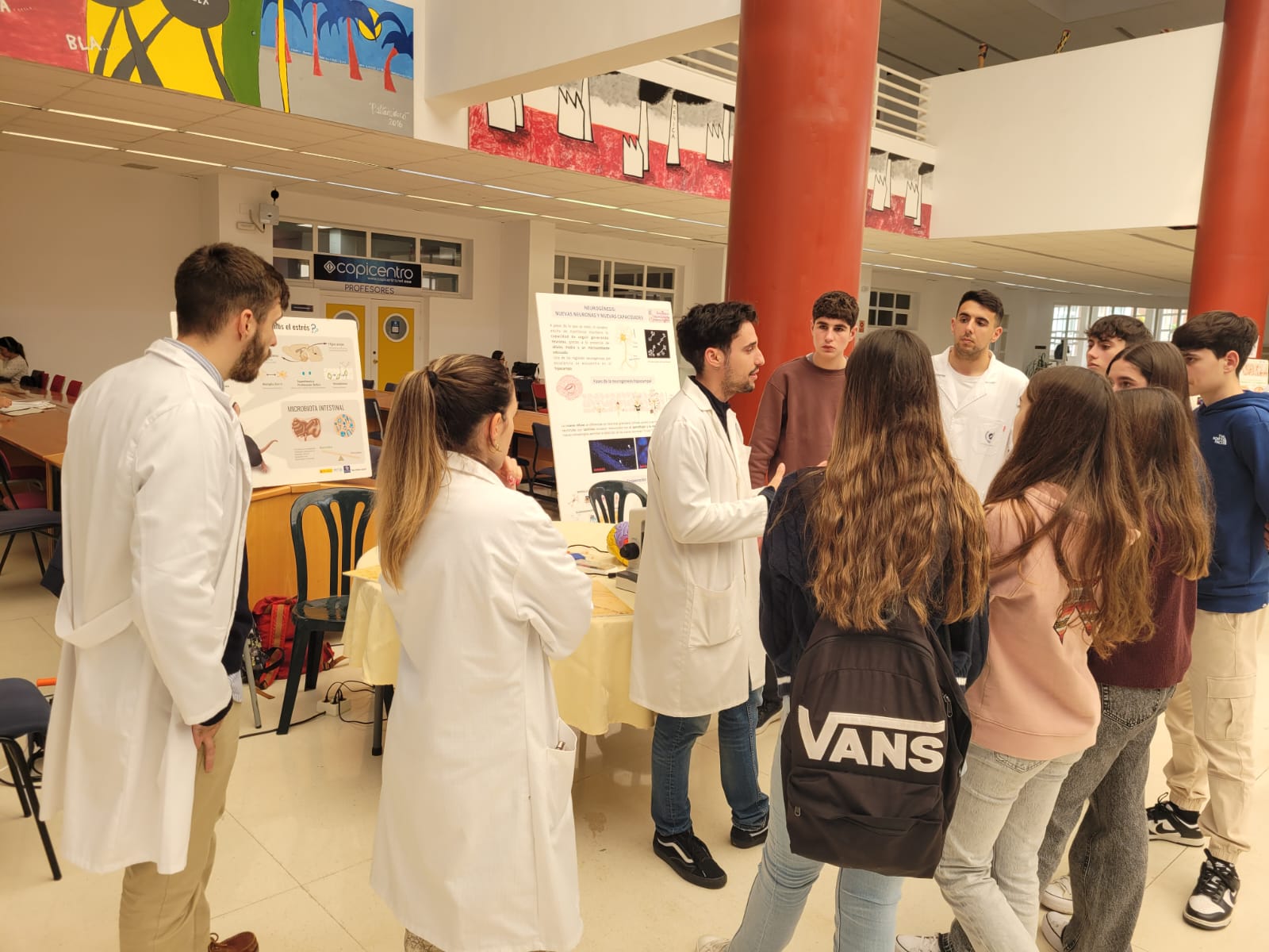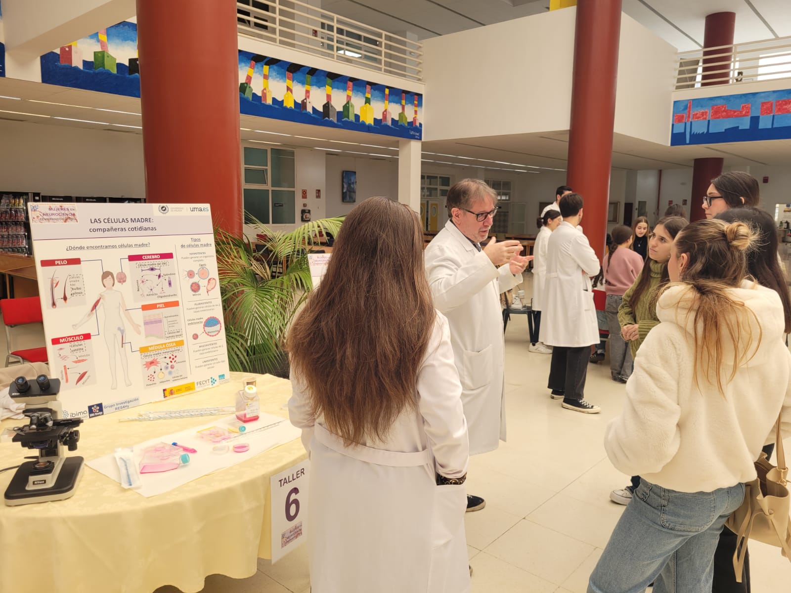A continuación, tras un descanso con un desayuno en la cafetería de Derecho, la mañana ha estado compuesta por una intensa sesión de talleres temáticos bajo el lema “Conoce tu cerebro”, con la presencia de más de treinta investigadoras e investigadores de la Universidad de Málaga, el Centro de Investigación Biomédica en Red de Enfermedades Neurodegenerativas (CIBERNED) y del Instituto de Investigación Biomédica de Málaga (IBIMA-Plataforma Bionand).